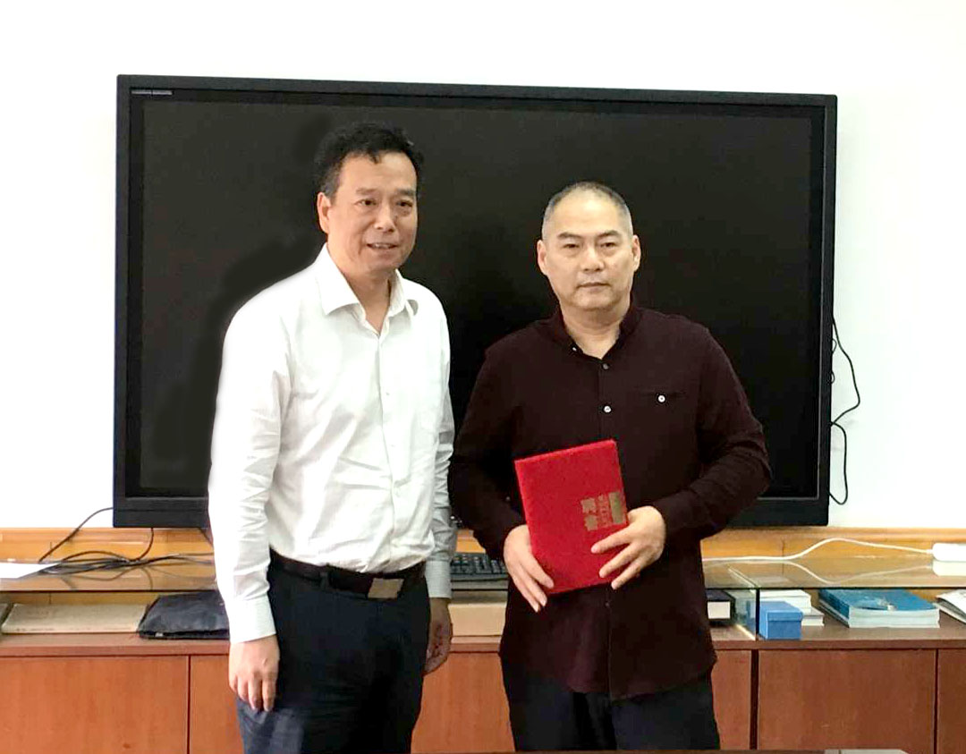 图2 陈飞书记为杨军副教授颁发聘书