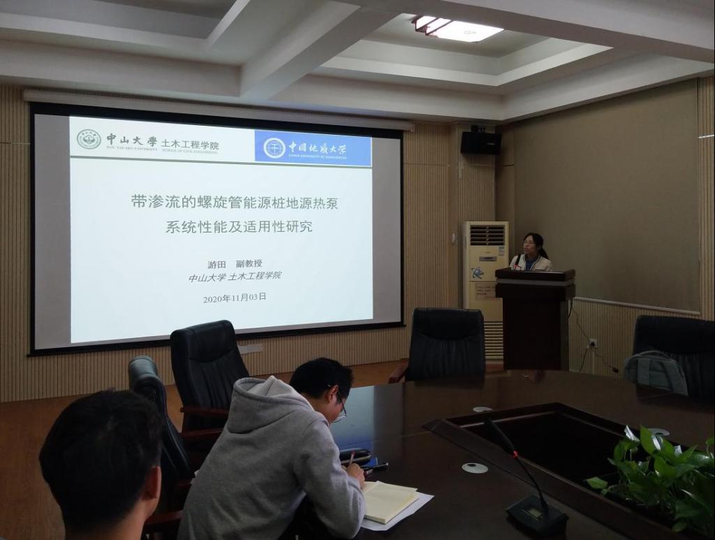 2020年11月3日下午,应安博游戏骆进副教授邀请,中山大学游田副教授作客工程文化论坛,在315会议室作了题为“带渗流的螺旋管能源桩地源热泵系统性能及其适用性研究”的学术报告。骆进副教授主持了此次论坛活动,学院50余名师生聆听了学术报告。