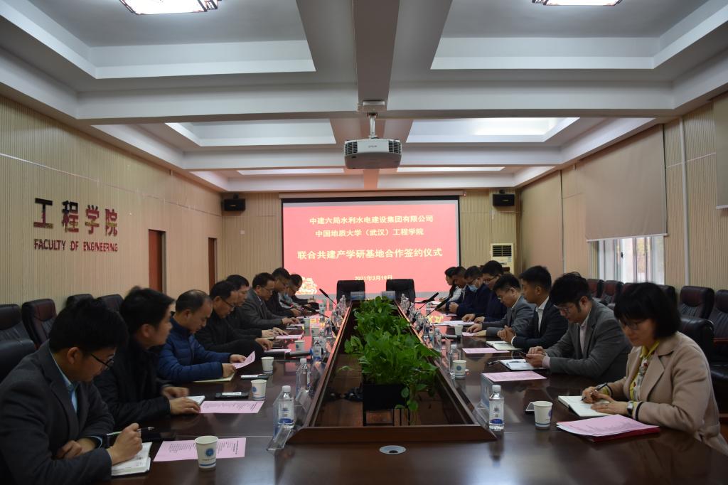 (通讯员:张美霞 文新)3月19日下午,我校1995级73951班校友、中建六局水利水电建设集团有限公司党委书记、董事长魏新颜,带领水利水电公司华北分公司、华南分公司、华中分公司、公司人力资源部负责人一行回到母校,在工程楼315就联合共建产学研基地进行了座谈并举行了签约仪式。中国地质大学(武汉)校友工作与教育基金管理处处长徐岩、安博游戏院长焦玉勇、校社会合作办副主任袁江、科长张祎,安博游戏陈建平教授、吴立教授等教师代表出席签约仪式。座谈会及签约仪式由安博游戏院长焦玉勇主持。