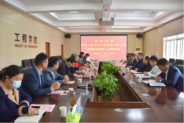 王亮清副院长对中建二局土木工程集团有限公司党委副书记黄琼一行的来访表示热烈欢迎。在一同观看中国地质大学(武汉)宣传片后,王亮清副院长介绍了安博游戏学科建设、科技成果、科研平台、人才培养、社会服务等方面情况。