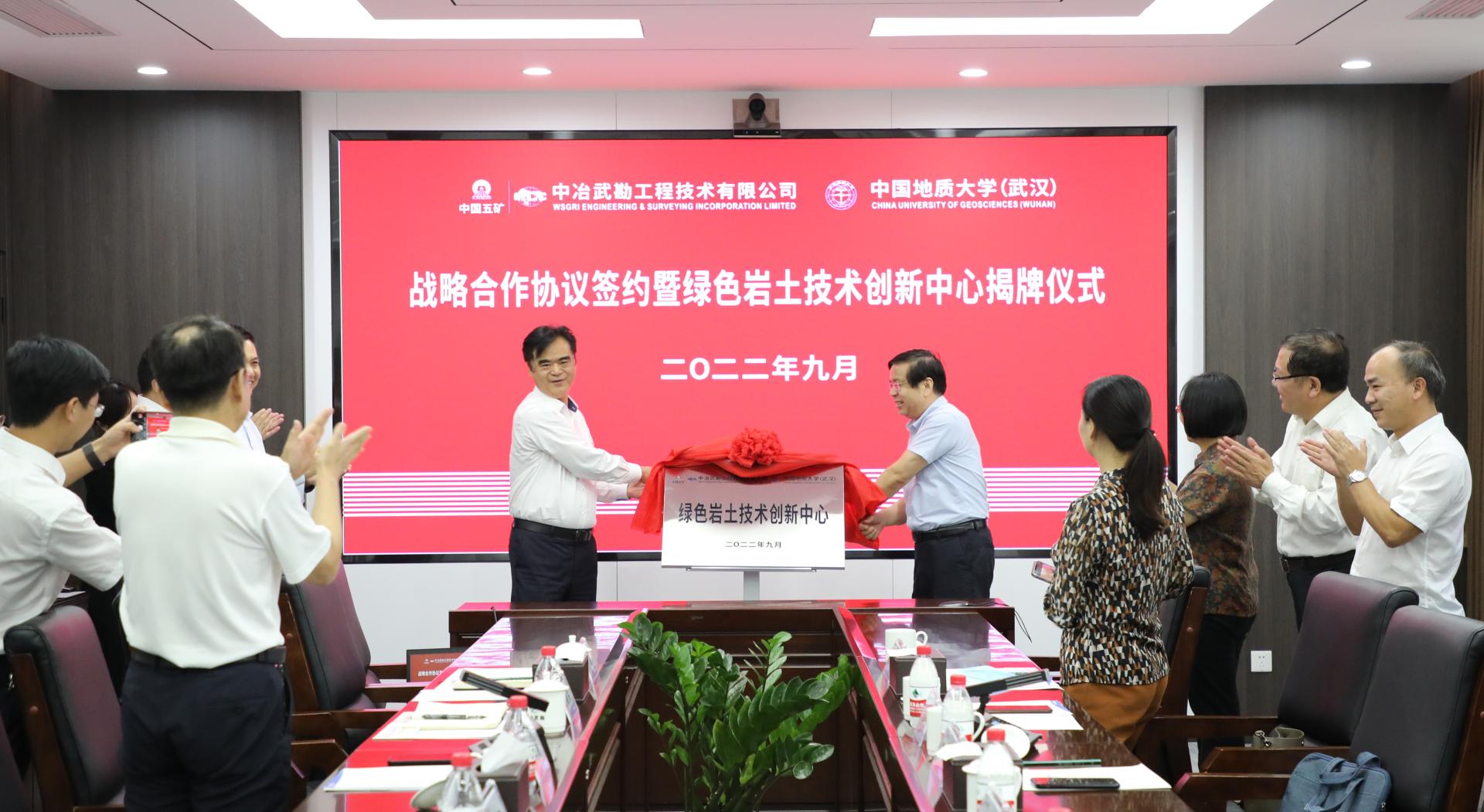 9月29日,安博游戏与中冶武勘工程技术有限公司签署战略合作框架协议,并联合成立“绿色岩土技术创新中心”,深入推进产学研发展。安博游戏党委书记李红丽和中冶武勘副总经理、总工程师江永建代表双方签署战略合作协议。中国地质大学(武汉)党委副书记唐辉明,中冶武勘党委书记、董事长臧中海见证签约并共同为“绿色岩土技术创新中心”揭牌。双方将把科教资源优势和工程技术成果转化优势紧密结合,在产学研用协同创新、人才培养等方面进行全方位的合作。