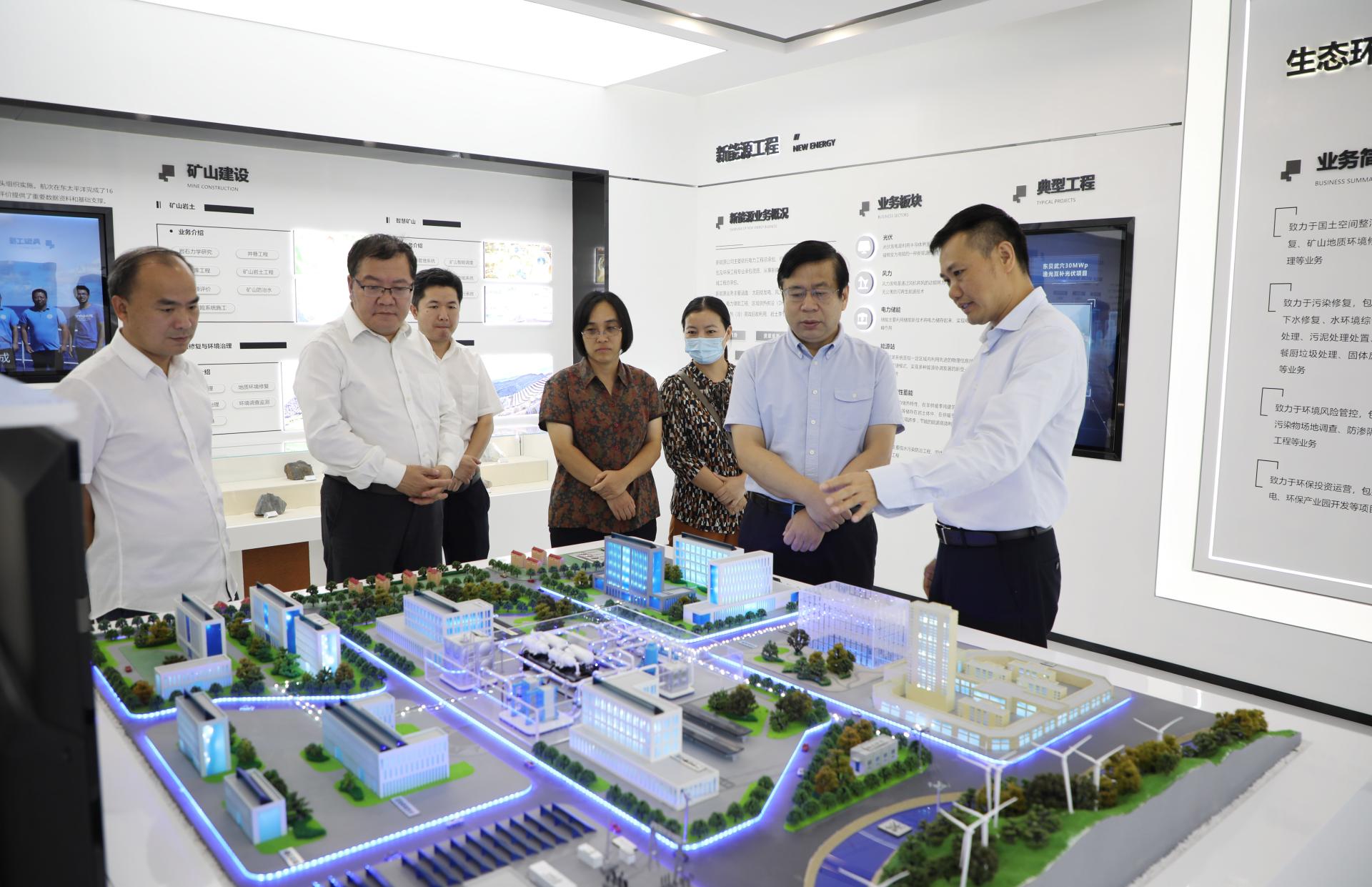 会谈前,中冶武勘邀请唐辉明一行参观了企业展厅。唐辉明对中冶武勘悠久的历史和取得的辉煌业绩表示高度赞赏。