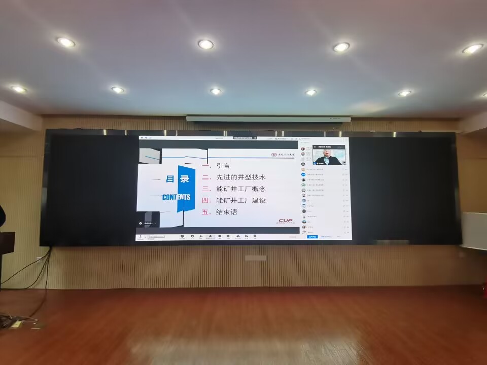 高德利院士作了题为“非常规能矿井工厂与绿色开发之道”的学术报告。他首先介绍了人与自然和谐共生的理念,引出人类的发展离不开对地球能源资源的利用,并详细阐述了能源资源类别以及在历次能源革命中消费结构的变化。具体针对中国的能源消费结构优化问题,高院士提出必须依赖非常规油气资源原位转化开采技术,实现非常规能矿的绿色高效开发。这一创新性方法的实现离不开先进的井型技术。高院士结合自身工作详细介绍了包括水平井与多分支井、U型井、煤层气高效开发井、大位移井、页岩气从式水平井等在内的多种先进井型。高院士针对能矿开发耗能问题提出了地下能矿井工厂方案,详细展示了复杂结构井工厂、页岩气井工厂、井下电加热技术应用、稠油热采工程、地下煤气化井工厂、深地煤矿绿色开发井等案例。高院士指出地下能源井建设的关键在于定向钻井技术体系、随钻数据传输技术、工程作业极限的突破。最后,高院士总结能矿井工厂是非常规绿色能矿高效开发不可或缺的基础设施,相应的优化设计与建设是关键核心技术所在。