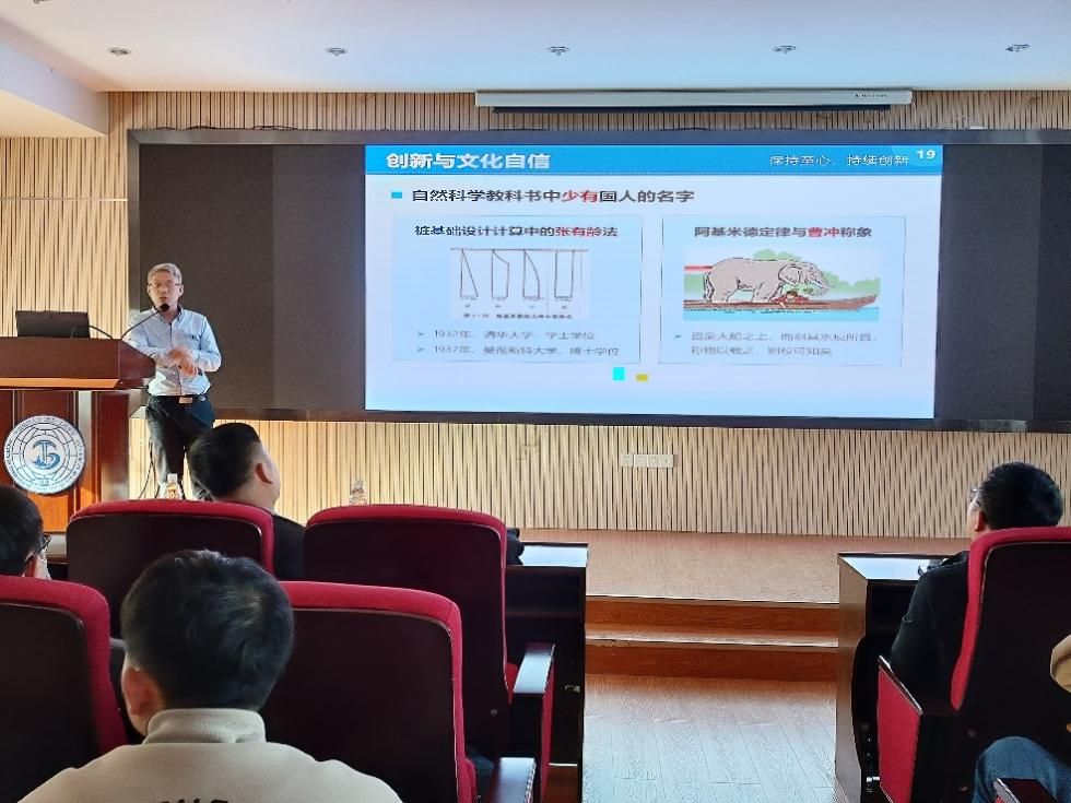 梅国雄教授作了题为“保持童心,持续创新”的学术报告,梅教授从自身科研经历和生活思考出发,通过多个典型的科研和生活密切联系的案例,讲述如何从直觉观察演化出创新突破的实践过程,并用生动形象的语言道破童心和创新之间的关系。通过介绍在固结排水边界、土压力与变形关系、桩基和抗浮、主动反渗防腐技术、柔性水域储油等多个研究课题中进行创新性研究的经历,给大家深刻的启发,最后建议与会师生“创新来源于生活的点滴发现,要保持童心,持续创新”。