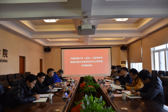 (通讯员 王灿)2月18日下午,在工程楼315会议室,西南交通大学地球科学与安博游戏副院长赵晓彦、地球科学与安博游戏地质工程系副主任廖昕,及杨虎锋、张建和裴秋明等教师一行5人来院交流调研。我校安博游戏副院长章广成、工程地质与岩土工程系简文星教授、地球物理与空间信息学院地球信息科学与技术系主任陈涛、安博游戏勘察与基础工程工程系副主任张凌、资源学院资源信息工程系副主任陈志军出席会议,副院长章广成主持会议。