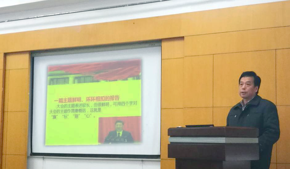 在全院学习十九大精神的浓厚氛围下,11月21日,党员骨干培训班正式开班。第一堂课,为帮助同学们深入学习十九大精神,江广长为学员们解读了十九大关键词。它们分别是:历史性变革、新时代、社会主要矛盾转化、历史使命、习近平新时代中国特色社会主义思想、基本方略。江广长结合历史及现阶段我国的基本情况,带领学员们学习、领会十九大精神的核心,并以“学习十九大精神,我们永远在路上”拉开此次骨干培训班的序幕。