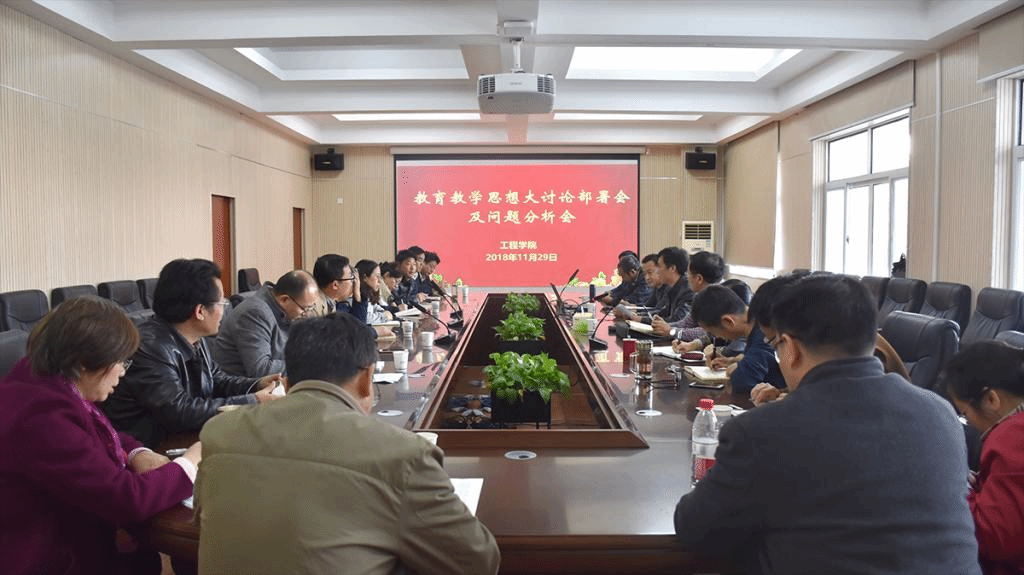安博游戏于2018年11月29日下午14:00在工程楼315会议室,召开了“安博游戏教育教学思想大讨论部署会及问题分析会”。参加会议的有学院党政领导和各系主任、支部书记及学科带头人。会议由党委书记陈飞主持,此次会议目的是提高认识,统一思想,落实行动。